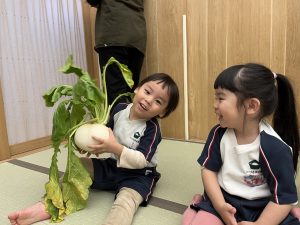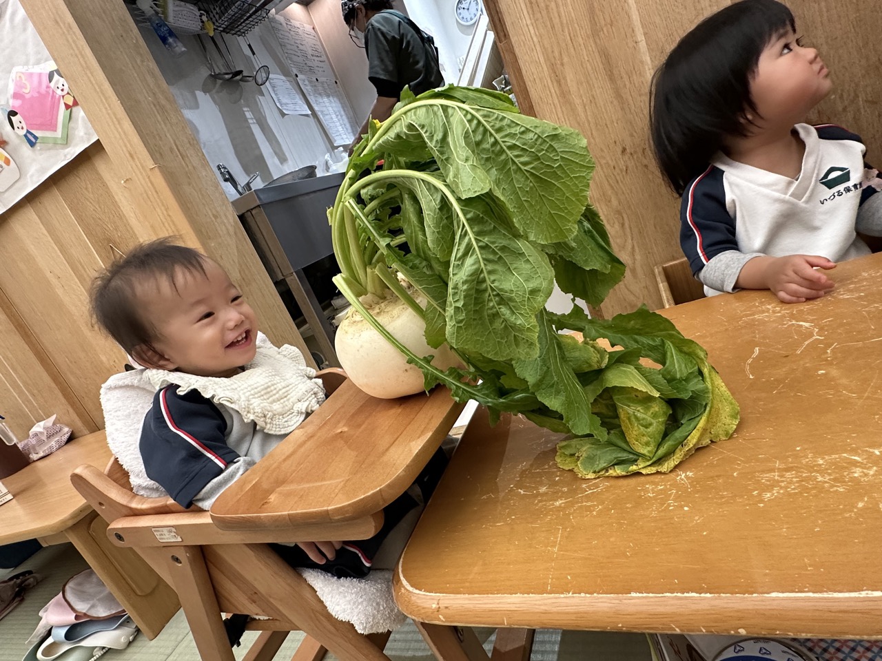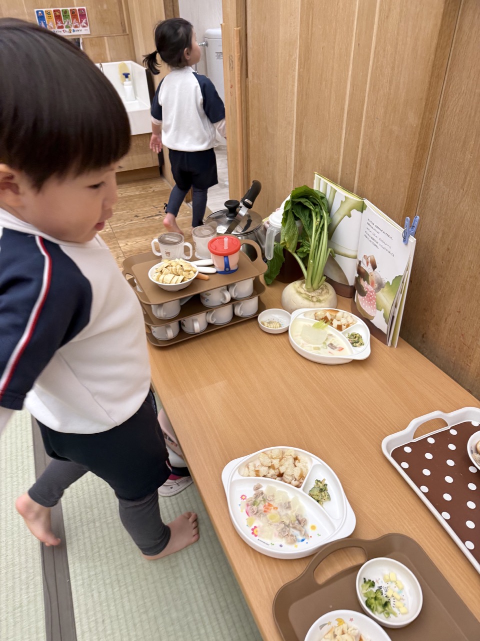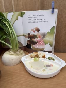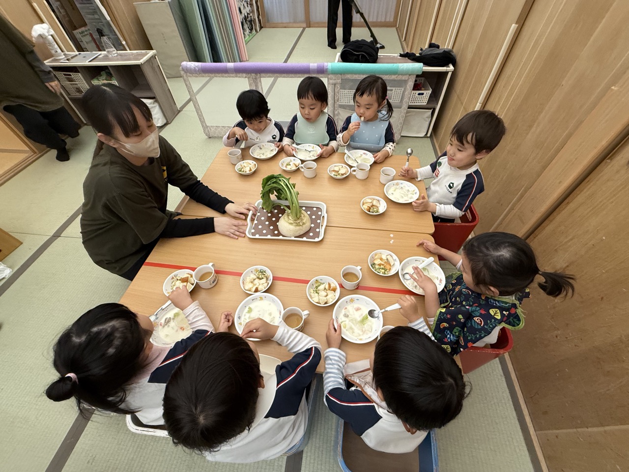 給食の時間、お皿を見た子どもたちはビックリ。 「あ!かぶが入ってる!」 「(大きなかぶが)小さくなっちゃった!」