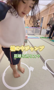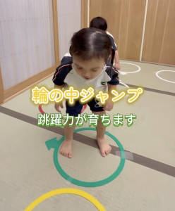 ・輪の中ジャンプ:距離を測る力や、跳躍力を育みます。