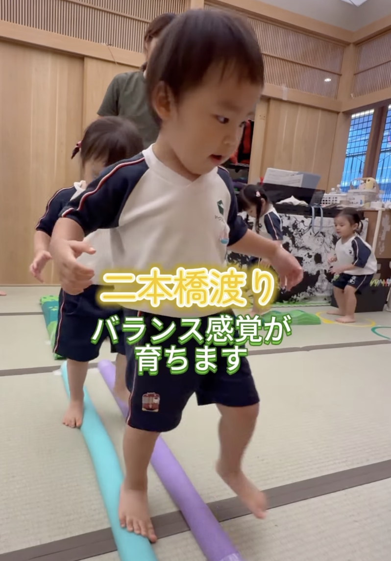 ・二本橋渡り:両足別々の細い道を渡ることで、バランス感覚を養います。